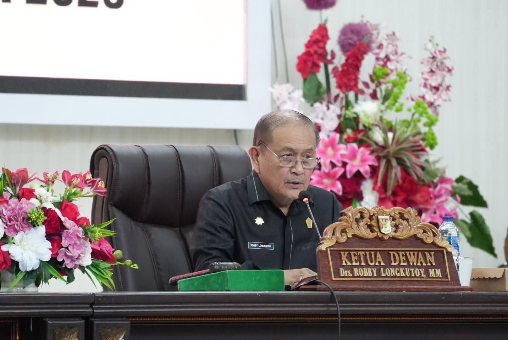 Rapat Paripurna tersebut dipimpin Ketua DPRD Minahasa, Robby Longkutoy, didampingi Wakil Ketua I Putri Pontororing, dan Wakil Ketua II Adrie Kamasi.